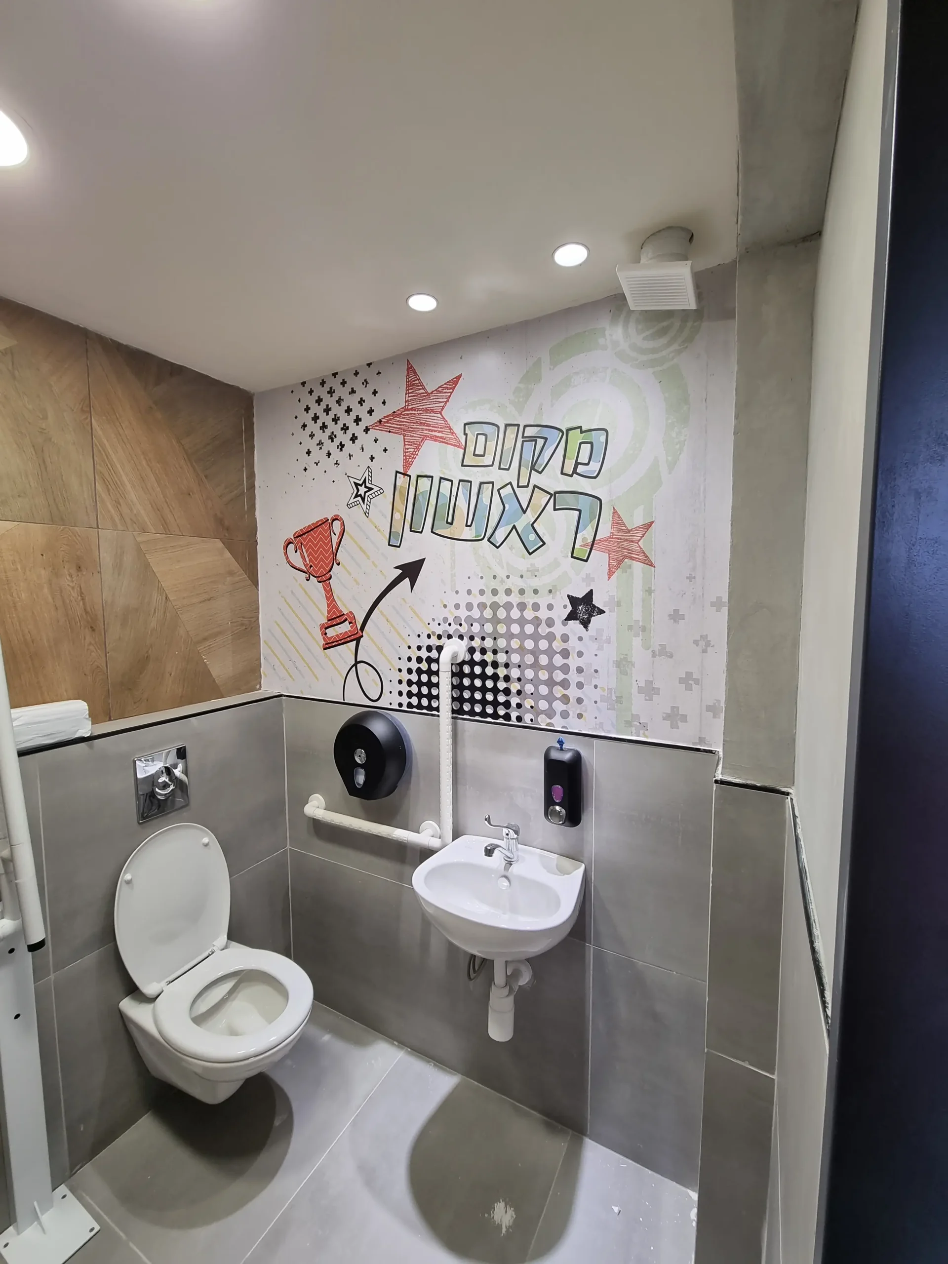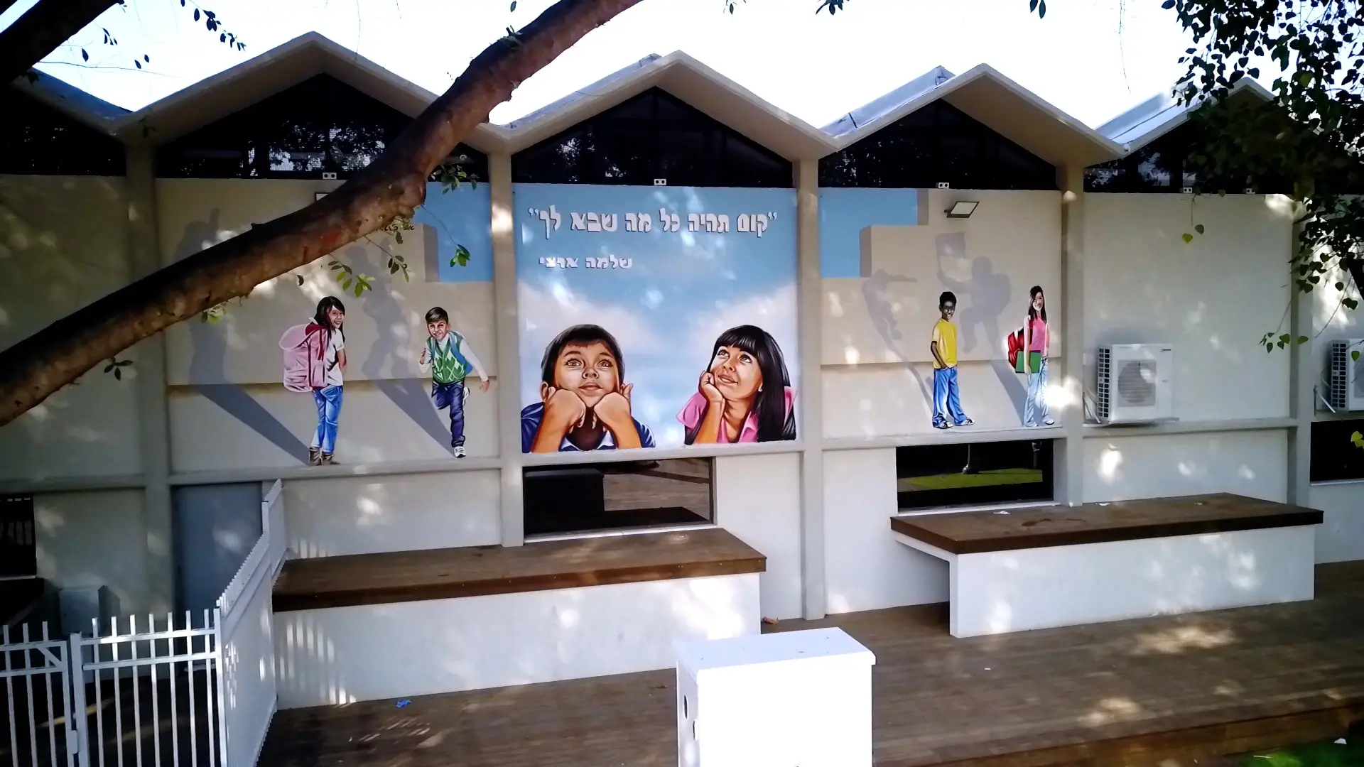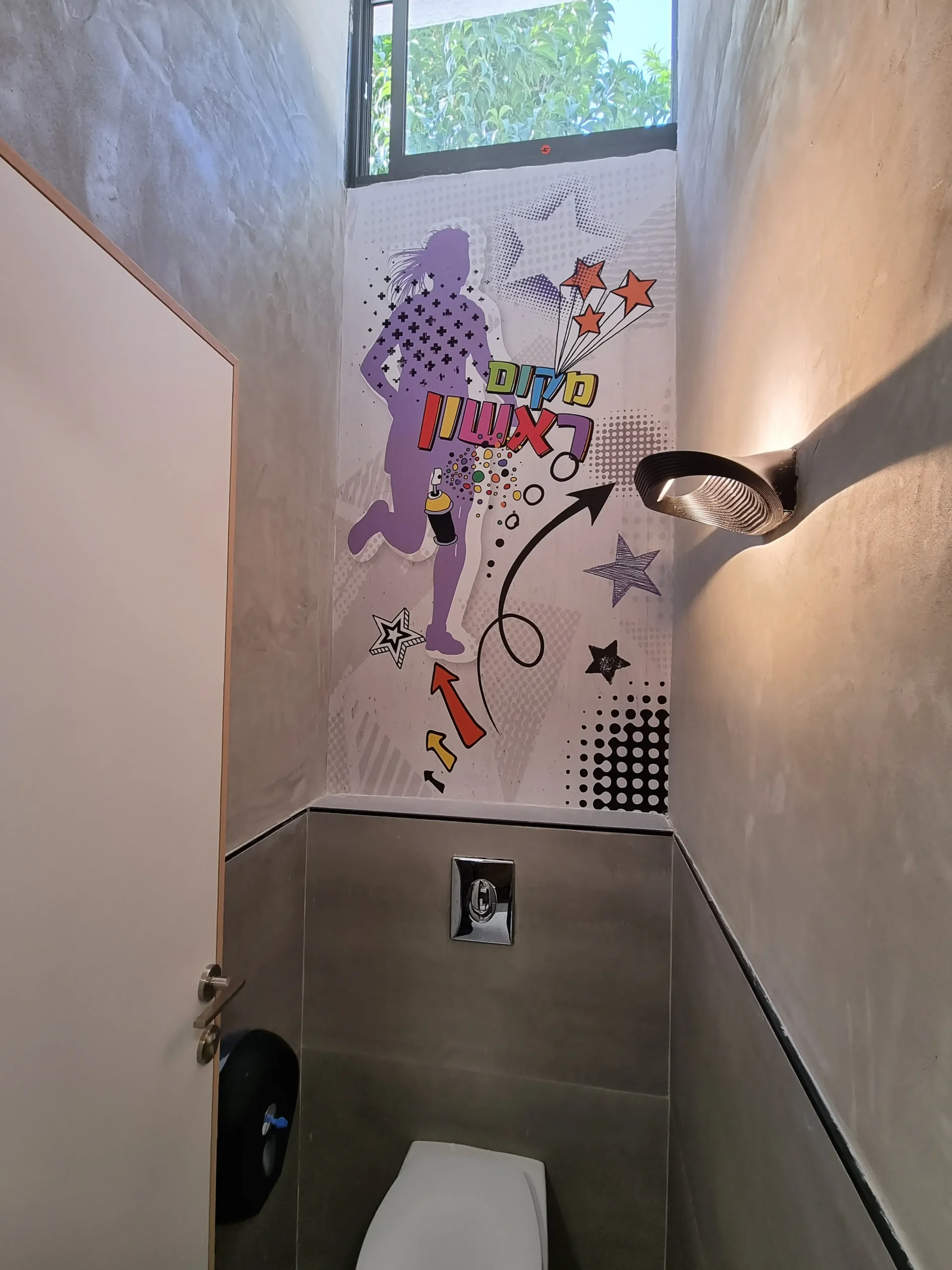גולת הכותרת בפרויקט היא ציורי הקירות המרהיבים, המשלבים את צבעי האפור והכתום בתוך האולם ומחוצה לו. ציורי הקיר החיצוניים, הפונים לרחוב, הופכים את האולם לנקודת ציון אדריכלית מושכת עין, המזמינה את הקהל הרחב להיכנס ולחוות את המרחב. החיבור הוויזואלי בין הפנים לחוץ מחזק את זהות האולם ויוצר הרמוניה עיצובית כוללת.