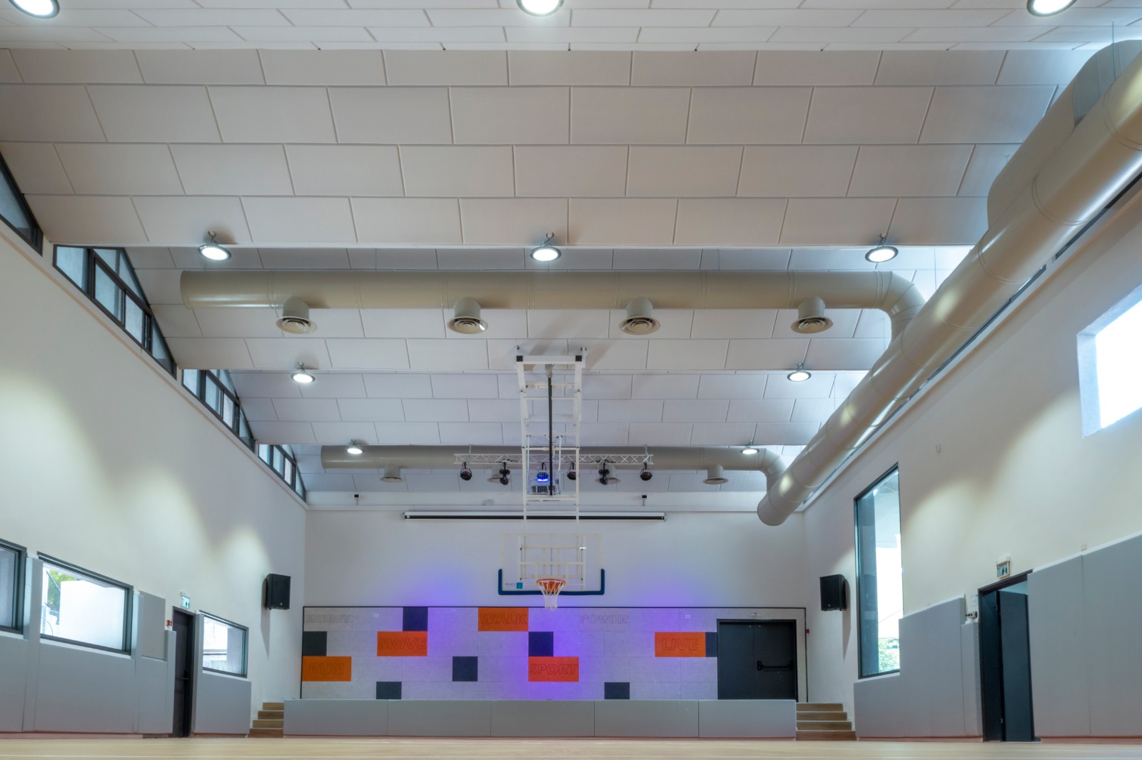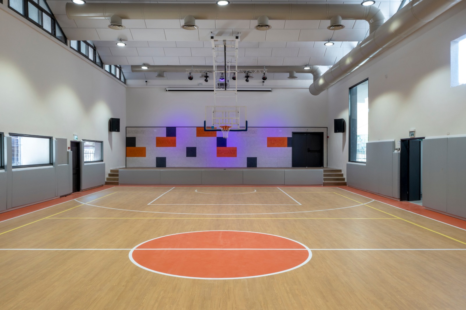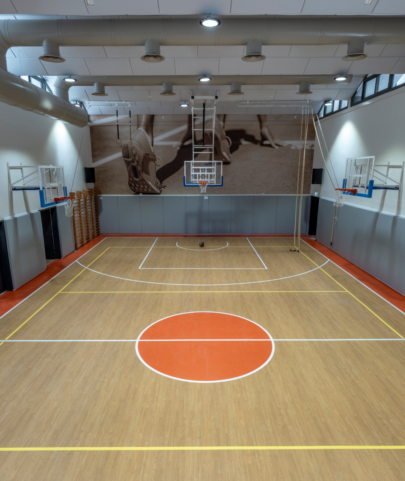 פרויקט עיצוב אולם הספורט בבית ספר עליות רמת גן מציג גישה חדשנית המשלבת פונקציונליות ועיצוב אסתטי מרהיב. האולם, המיועד לפעילות ספורטיבית מגוונת, עוצב בקונספט צבעוני ייחודי של גווני אפור וכתום, אשר ליוו את הפרויקט לכל אורכו – החל מעיצוב הפנים וכלה בעיצוב המבנה מבחוץ.
