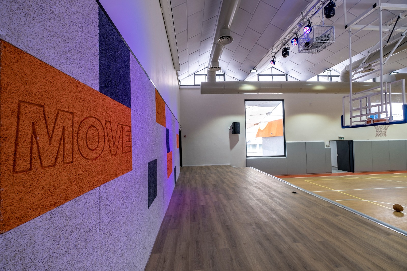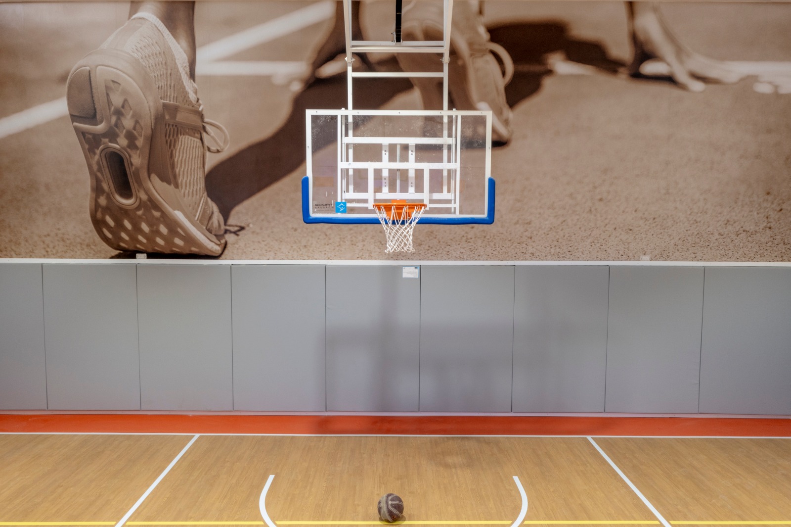 עיצוב אולם ספורט: דינמיות בכתום ואפור